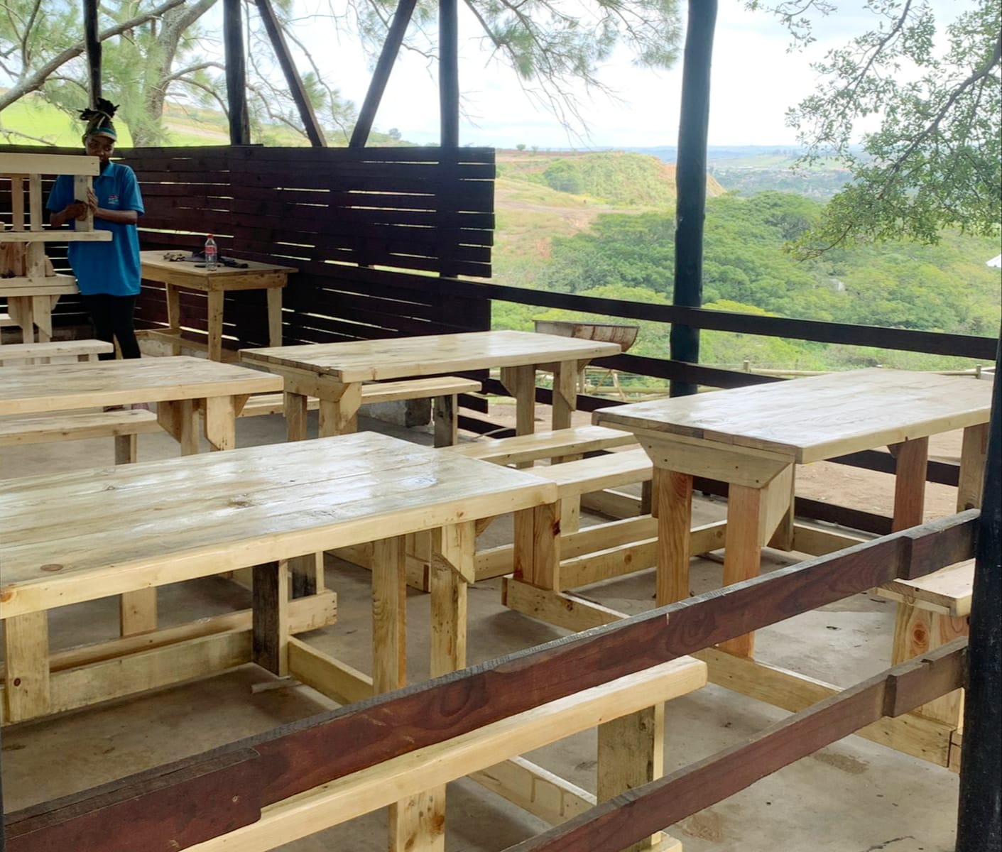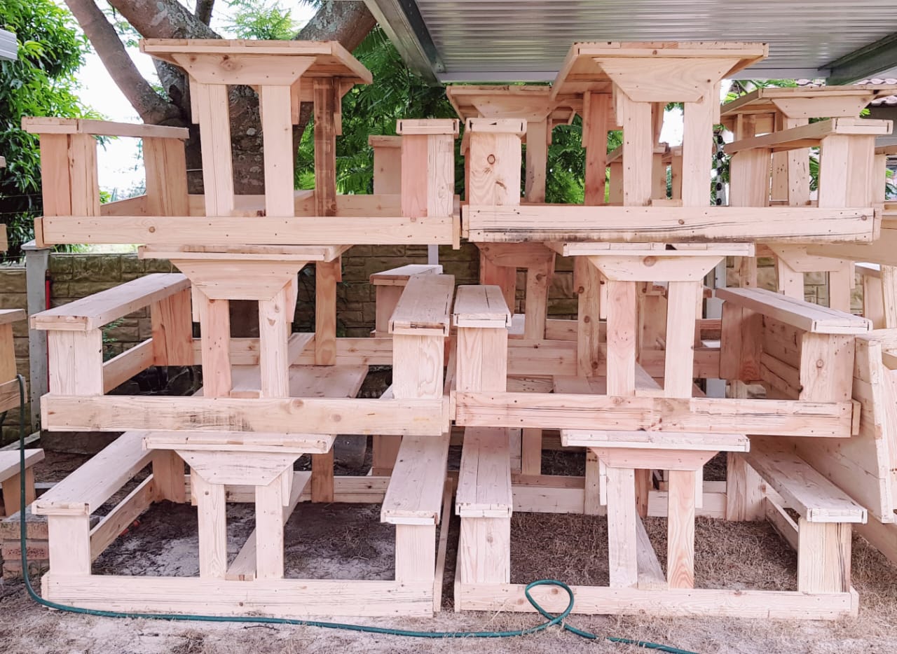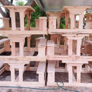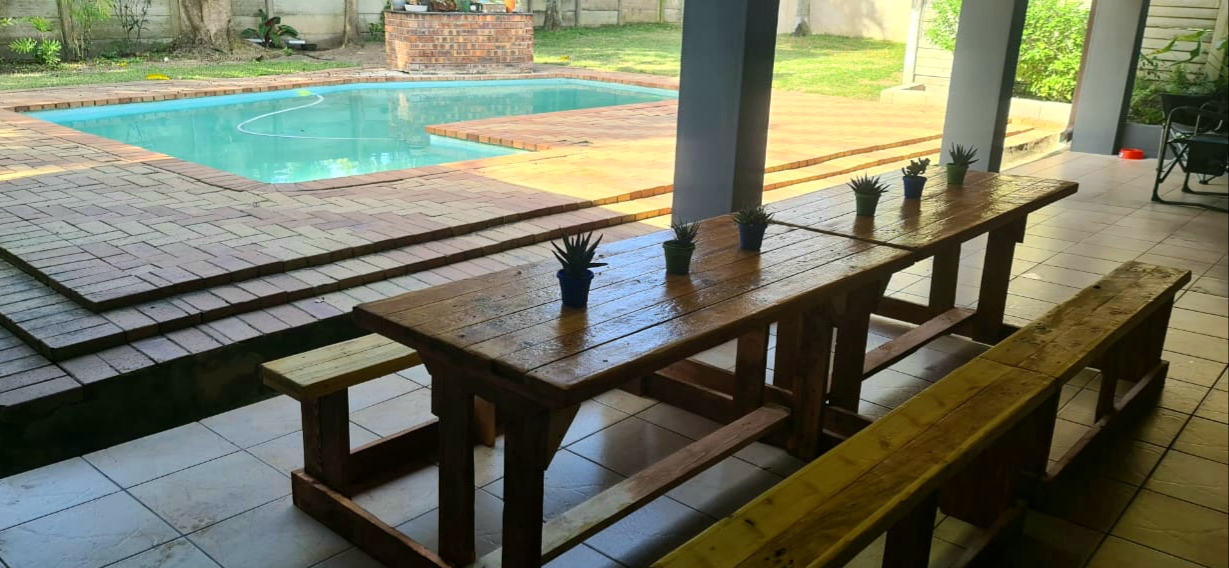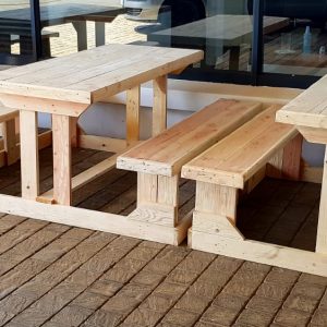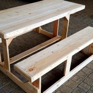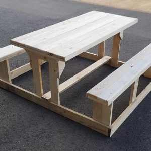 6 seater Wooden Picnic Tables & Benches at R1350 each, custom-made on demand and as many as you need. The tables are unvarnished and we use upcycled wood which makes this the ideal eco-friendly product for use in the home and business. The tables are screwed, glued and pinned together, so there are no unsightly large bolts sticking out.